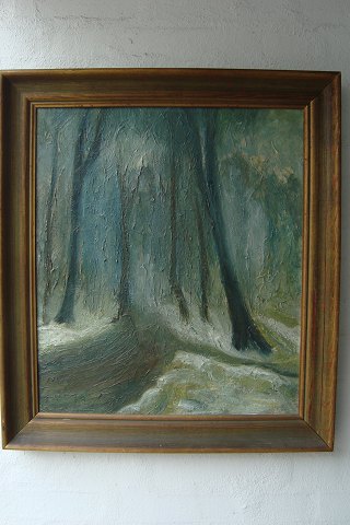 Maleri - Nøgne træer i vinterskov - Hans Billgren.