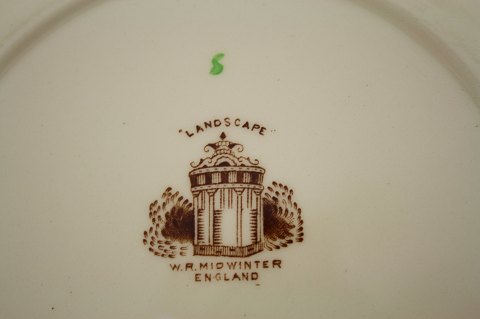 Landscape, W.R. Midwinther, England, fajance med landskabsmotiv. Perfekt stand.