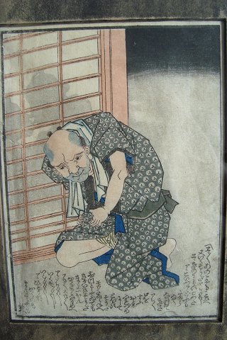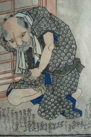 Japansk koloreret træsnit - Erotisk scene med ældre mand.