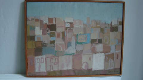 Text available in Danish: Maleri af Frank Ibsen - Græsk By 1971.
