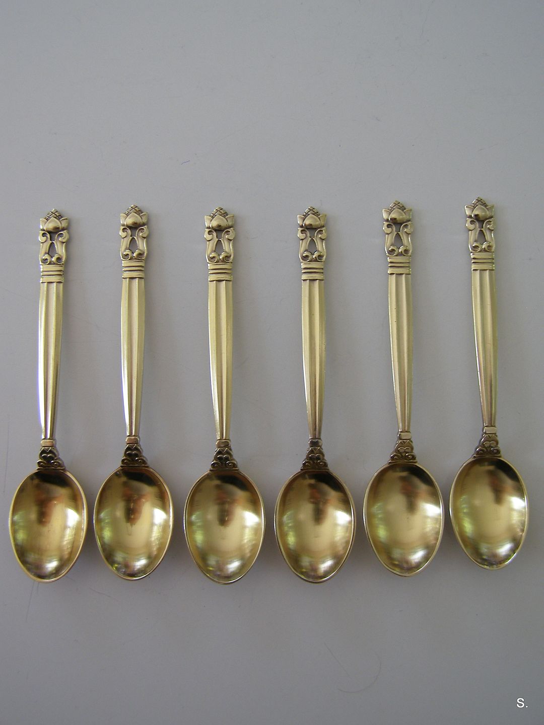 Moccaskeer i forgyldt sølv L:10cm. stemplet Georg Jensen
