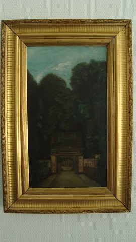 Bagpå blindramme metalskilt "Havsteen Roskilde" (måske proveniens til jægermester Th. Havsteen (død 1916), der ejede Maglegaard i Roskilde omkring århundredeskiftet).