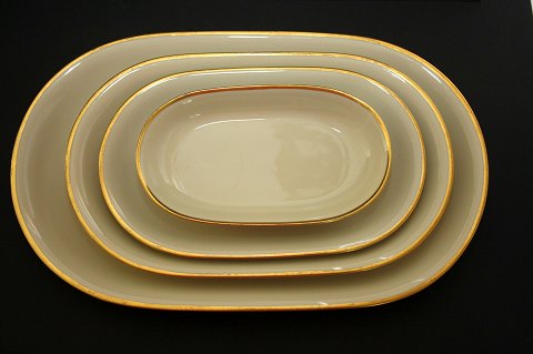 Kjøbenhavns Porcellains Maleri, Vallø cremefarvet glasur med guldbelægning. Stellet er fremstillet fra midten af 1930'erne.