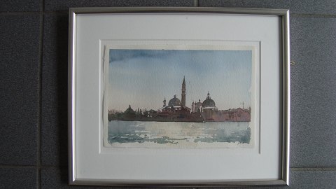 Akvarel af Peter V. Nielsen - Vue ind over Venedig.