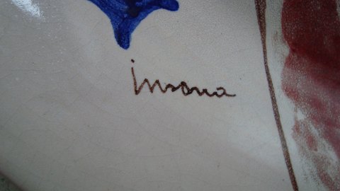 Spændende, stort, signeret bordfad/vægplakette med surealistisk dekoration.