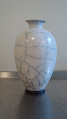 Raku vase med hvid craquelé glasur.