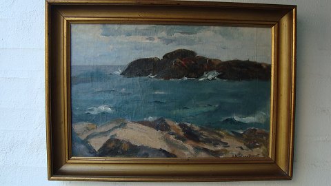 Maleri af Sigurd Kielland-Brandt - Kystparti fra Christiansø, Bornholm.