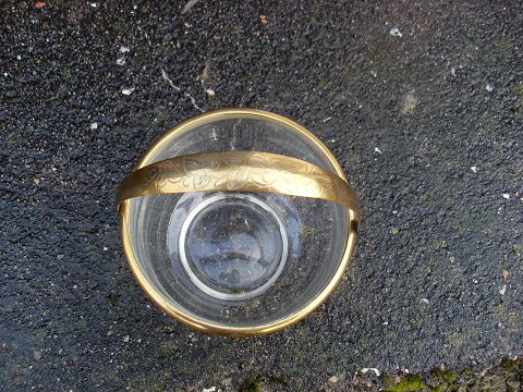 Smuk sukkerskål i klart glas med ciseleret messing hank.