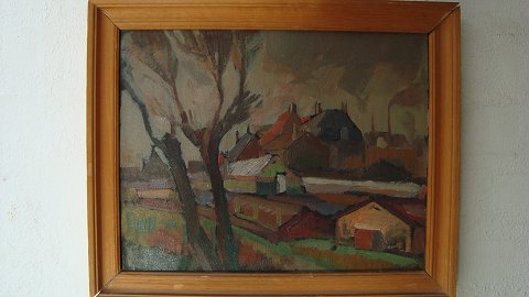 Landskab med fabriksbygninger 1919.
