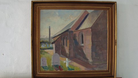 Parti fra Furreby Kirke med kirkegården.