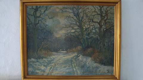 Maleri af ubekendt kunstner - Vinterparti fra skov.