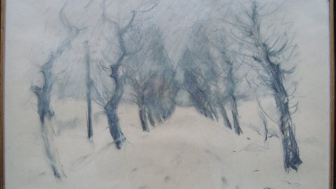 Kul tegning af Anders Hune 1925 - Allé ved vintertide.