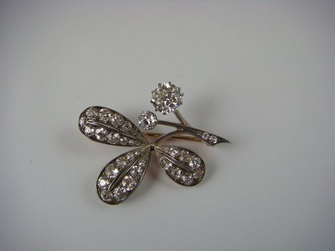 1 stor, 1 mindre og 29 små billanter af ældre slibning i alt ca. 1,65ct, samt 7 diamant roser.
