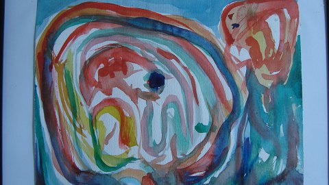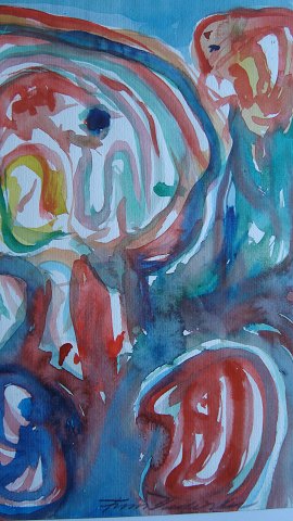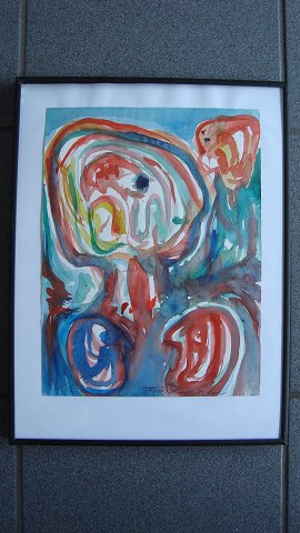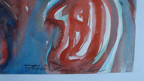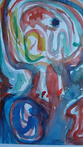 Akvarel af Finn Pedersen - Komposition med ansigter.