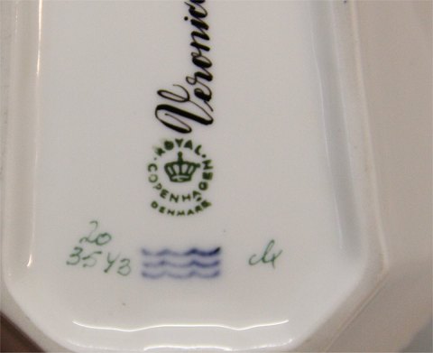 Royal Copenhagen Flora Danica Blomstermotiver på guldbelagt perlestel. 20-3543 Veronica præcox All. Aflang asiet nyt nr: 343 18 cm 1. sortering i fin og hel stand