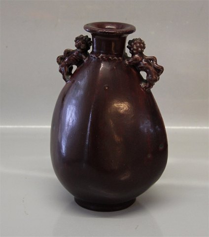 20877 Kgl. Vase med to løvehanke Okseblodsglasur Bode Willumsen feb. 1948 23 cm høj og 16 cm bred