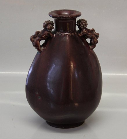 Royal Copenhagen stentøj BW 20877 Kgl. Vase med to løvehanke 23 cm høj og 16 cm bred Okseblodsglasur Bode Willumsen feb. 1948 I fin og hel stand