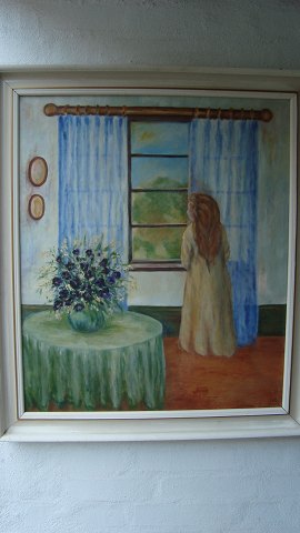 Maleri af Bendt Schneevoigt - Pige i interiør.