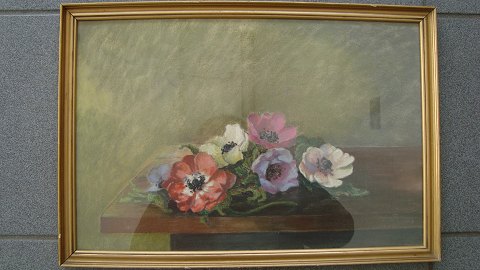 Pastel af Henning Thomsen 1947 - Franske anemoner på bord.