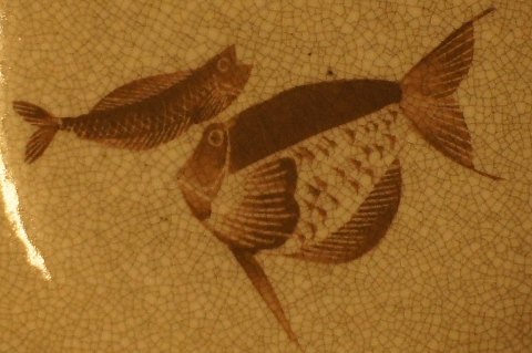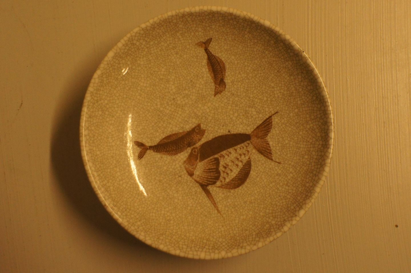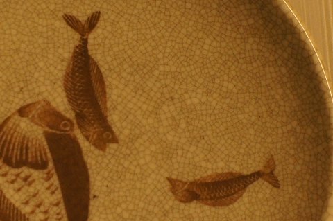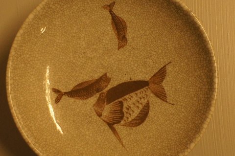 B & G Craquele bowl with fish. 17 cm. in diameter.