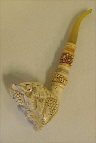 Merskums pibe rigt udskåret med vindrueranker og ansigt (repareret)