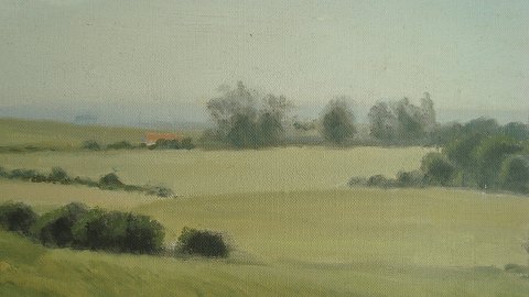 Maleri af Renal Bache - Sommerlandskab ved Skanderborg Sø 1980.