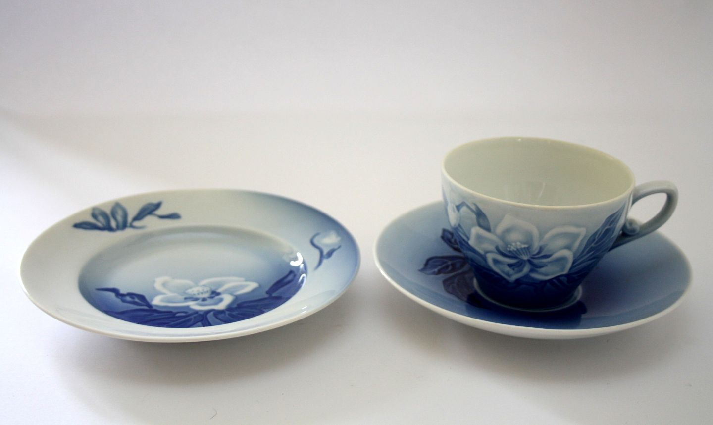Text available in Danish: Kaffekop, kagetallerken, Julerose, Bing & Grøndahl