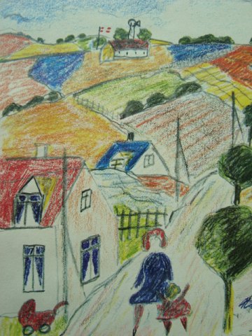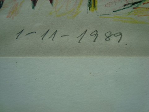 Text available in Danish: Tryk af Knud Erik Færgemann 1989 - Bymotiv med personer.