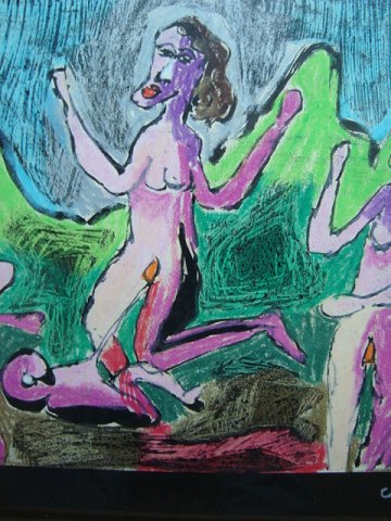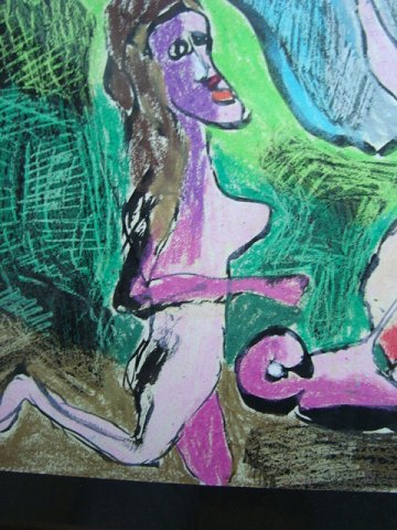 Pastel af Jens Sørensen - 3 nøgne kvinder i landskab