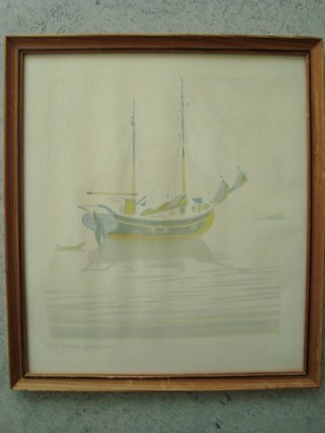 Litografisk tryk af Sikker Hansen - Sejlskib.