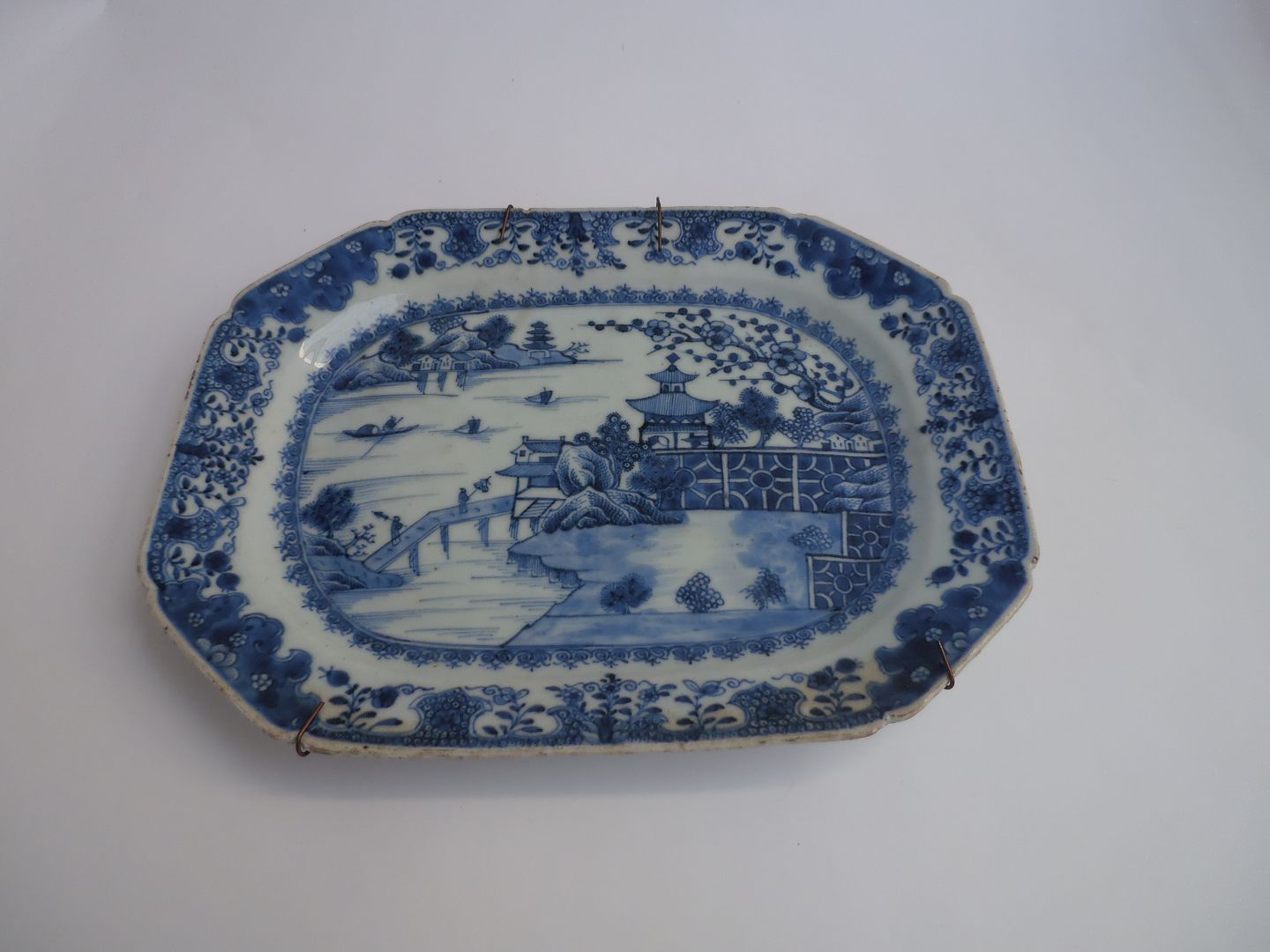 1 blue tray made in Chinese porcelain, China approx. 1840.