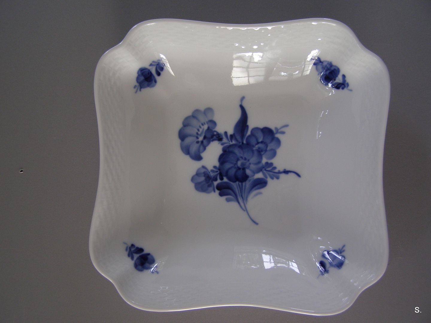 RC. 8063 Blå Blomst Kartoffelskål flettet 1. sort. 21cm*21cm.