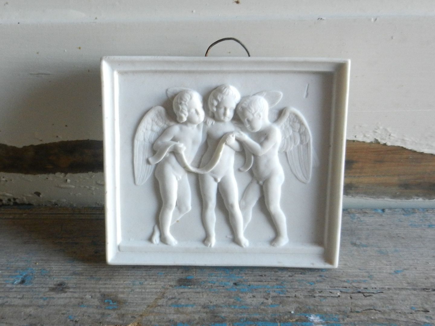 Royal Copenhagen sjælden bisquit plakette, tre amoriner