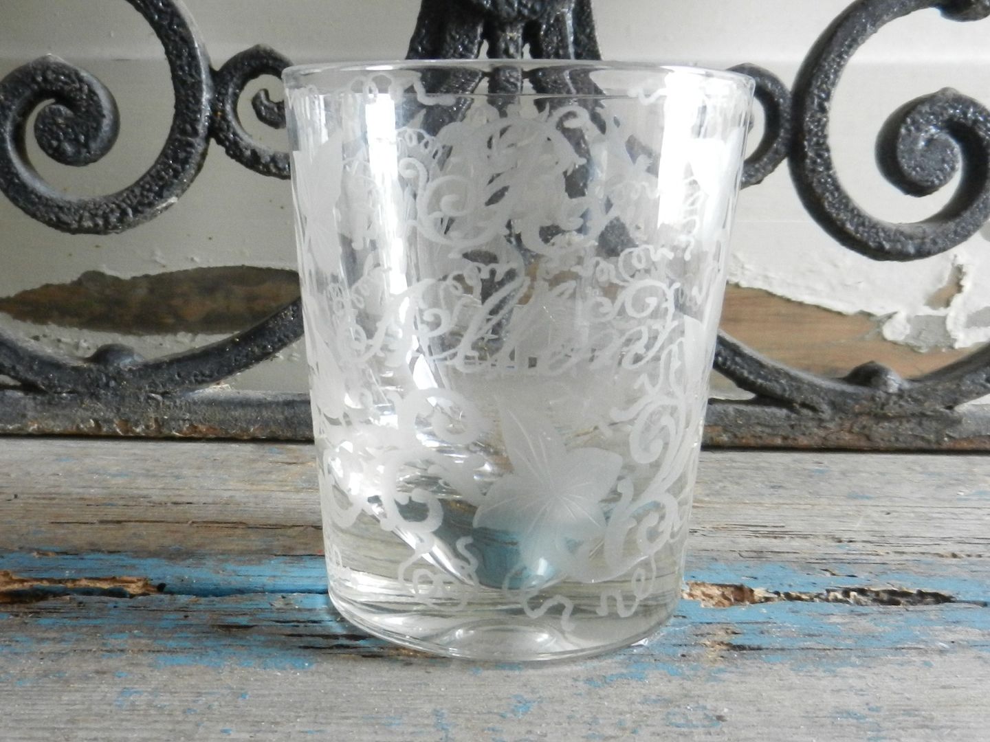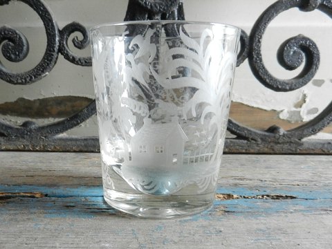 1800tals fransk glas graveret med navn(R Allem) bladværk samt lille hus.