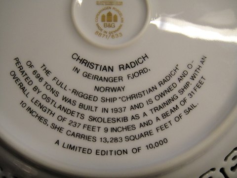 motiv Full-Rigged , "Christian Radich" , NORGE er nr. 6 i en serie af 6 stk. windjammer Tallerkner / platte. nr. 8871/633