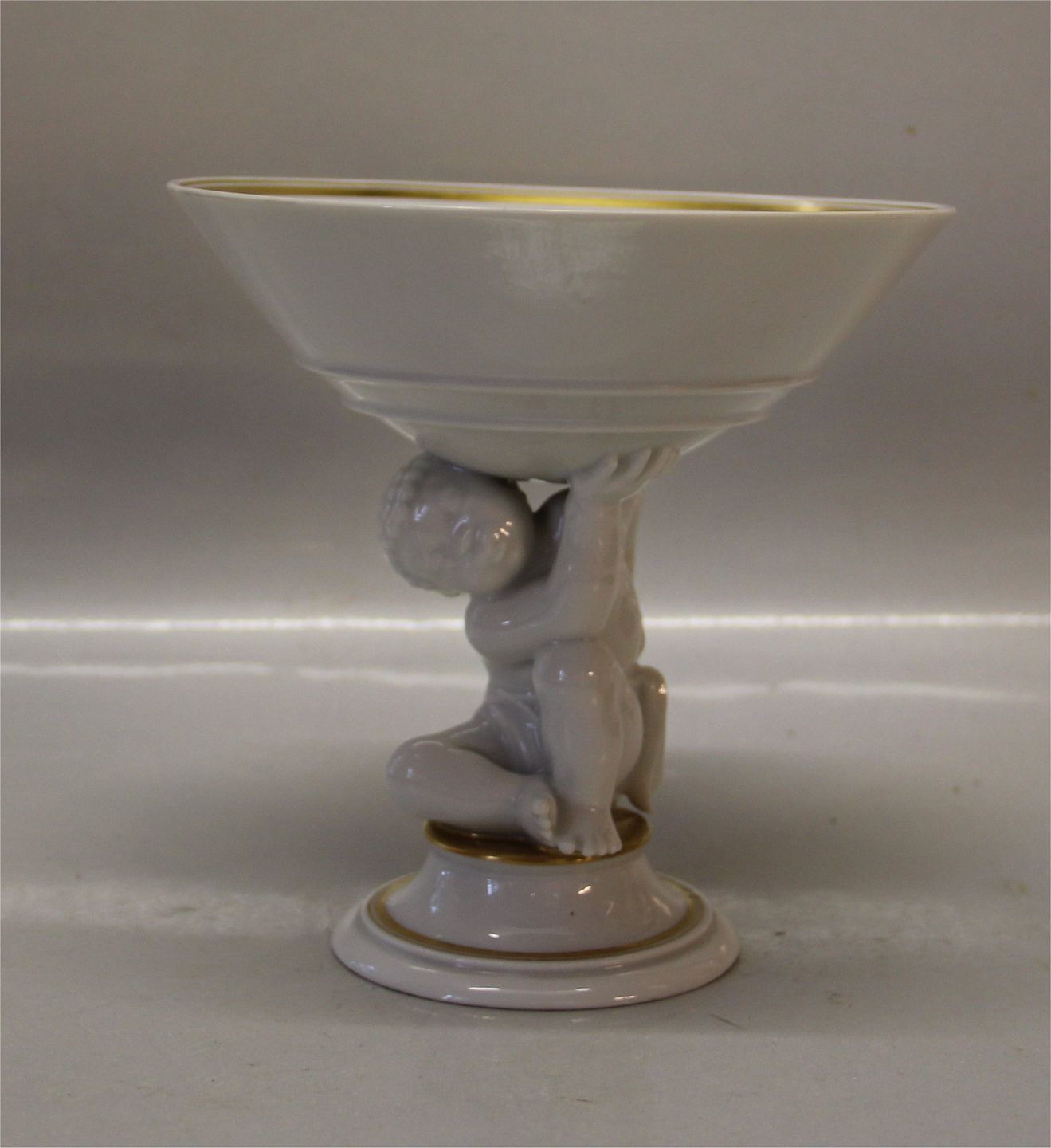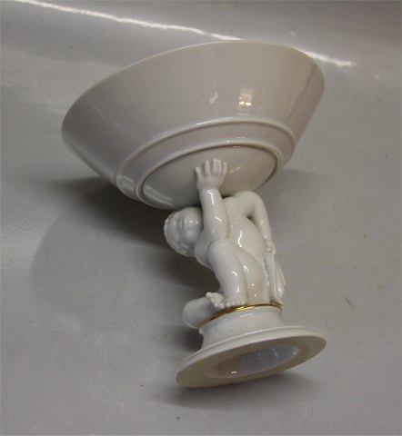 Royal Copenhagen 12455 RC Child holding a bowl 15 x 15 cm Blanc de chine with gold 1938 Possible Arno Malinowski ? In mint and nice condition