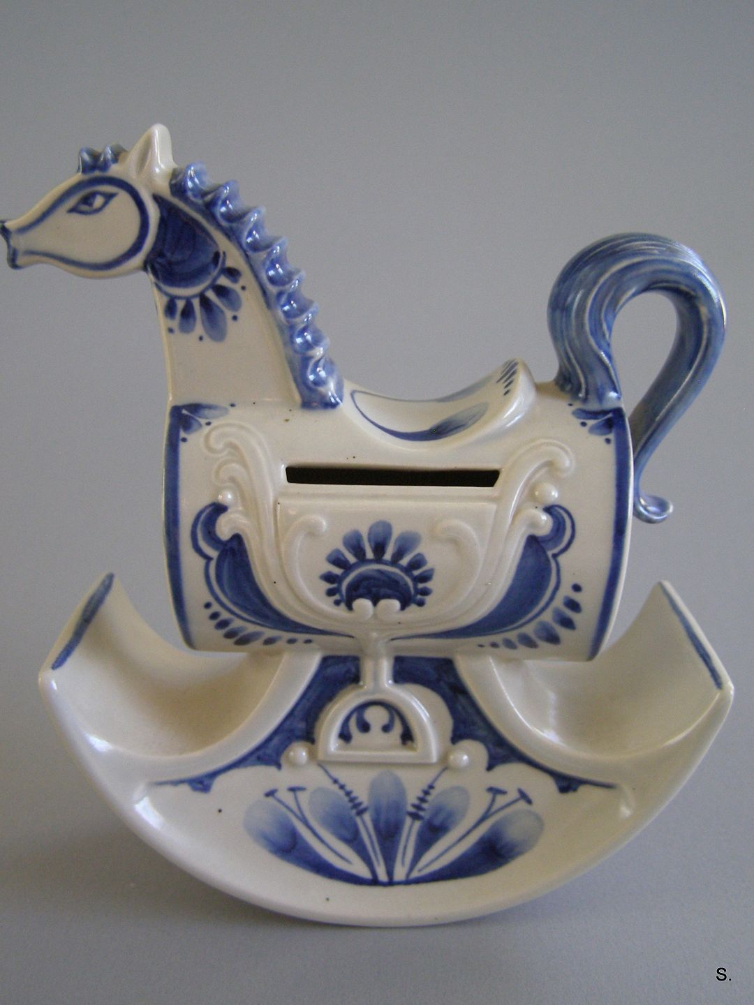 Bjørn Wiinblad Sparebøsse i form af gyngehest Rosenthal Studioline håndmalet. Der medfølger nøgle