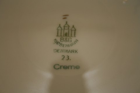 Text available in Danish: Bing & Grøndahl, Aakjær cremet stel med guldkant.