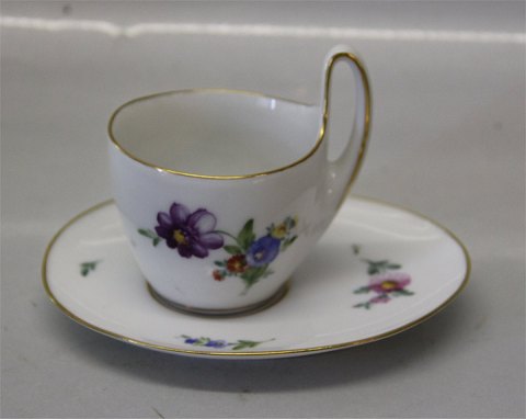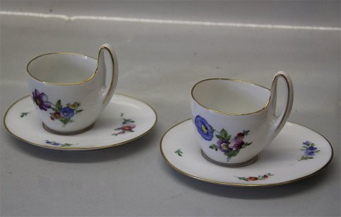 Royal Copenhagen porcelæn Saksisk Blomst 483 Art Nouveau kop med høj hank 8 cm & underkop 13 x 11 cm Den ene underkop med reperation. Håndmalet. I fin og hel stand