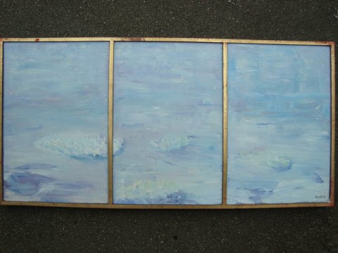 Acryl på plader indrammet som triptykon.