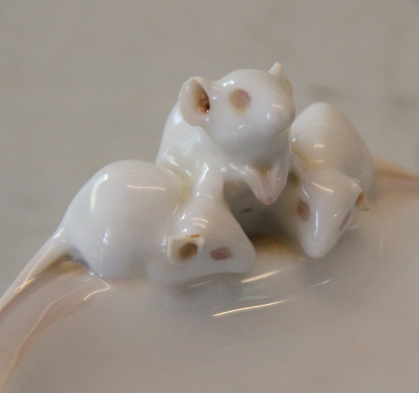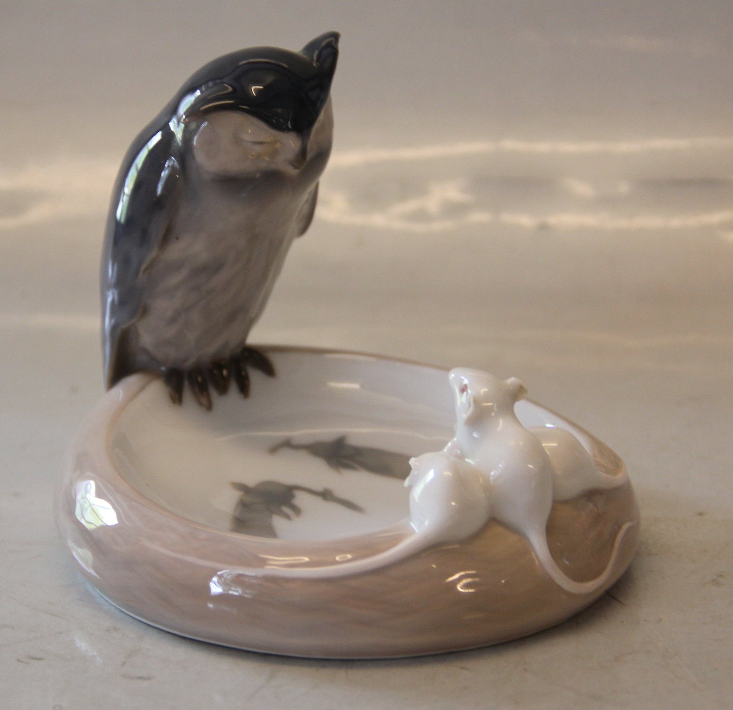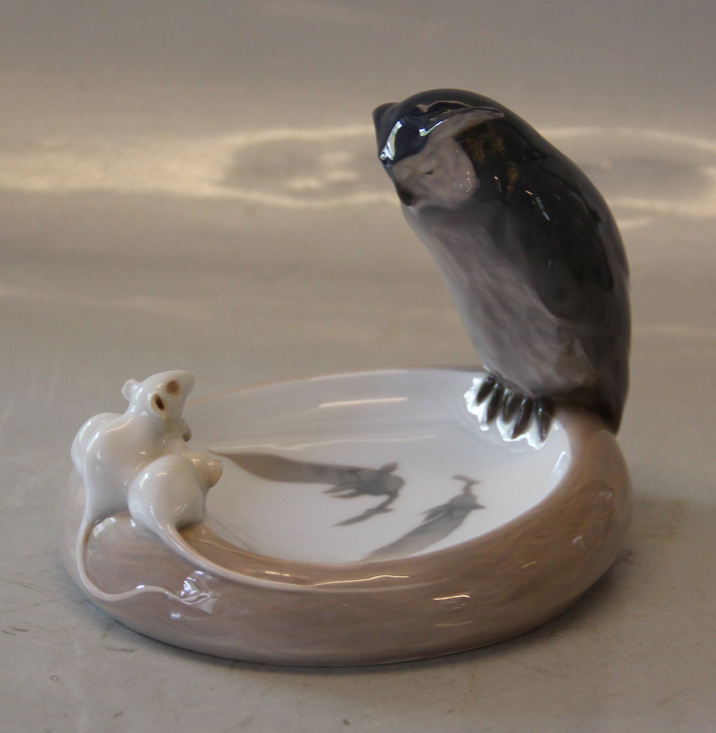 Kongelig Dansk Art Nouveau fig 610-1050 Kgl. Ugle og tre mus på skål Chr, Thomsen 1904 14 x 13 cm