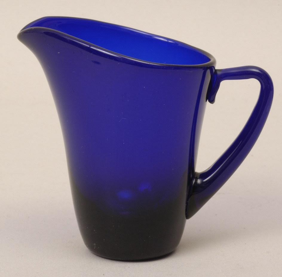 Antik flødekande, cobolt blåt glas, 19. årh.