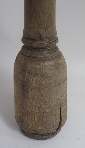 Vægt i egetræ, Danmark, 1700-tallet, profileret, med jern i enden og krog. Med små messingsøm. L.: 72 cm.