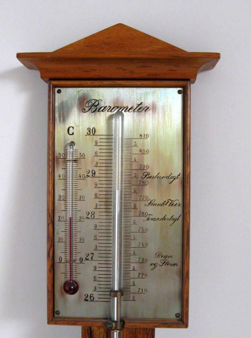 Barometer, Danmark, 19. årh. I palisander. Med kviksølvsøjle. L: 96 cm.