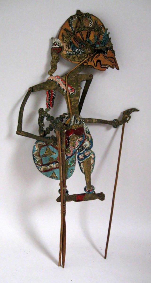 Wayang kulit skyggedukke, Indonesien, 19. årh. Bemalet bøffel læder. H.: 56 cm. Proveniens: Kunstneren Mogens Kjær.