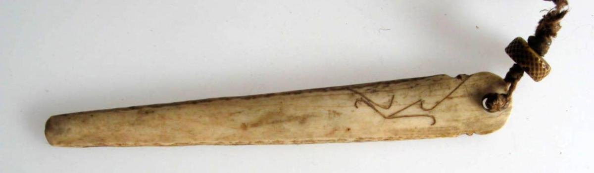 Japansk drikkedunk, 19. årh. "Suito", kalabas (lagenaria siceraria) med låg i udskåret træ og netsuke i ben. L.: 17 cm.