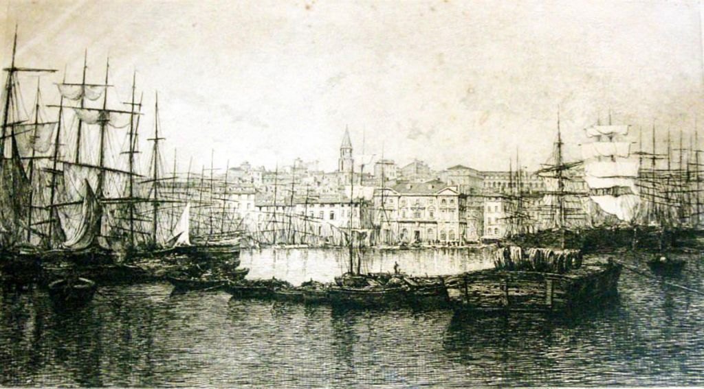 Gautier, Lucien (1850 - 1922) Frankrig.: Parti fra havnen i Marseille. Radering. 30 x 42 cm Med træramme. Signeret.