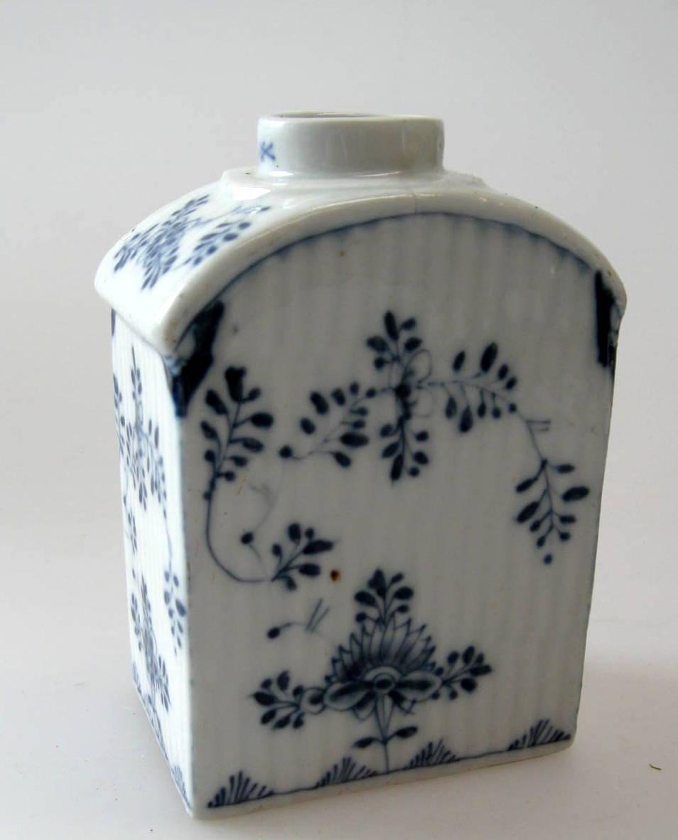 Meissen te Dose in Porzellan, 18. Jahrhundert. Blau bemalt mit streu Blumen. Gestempelt. H:. 10,5 cm.