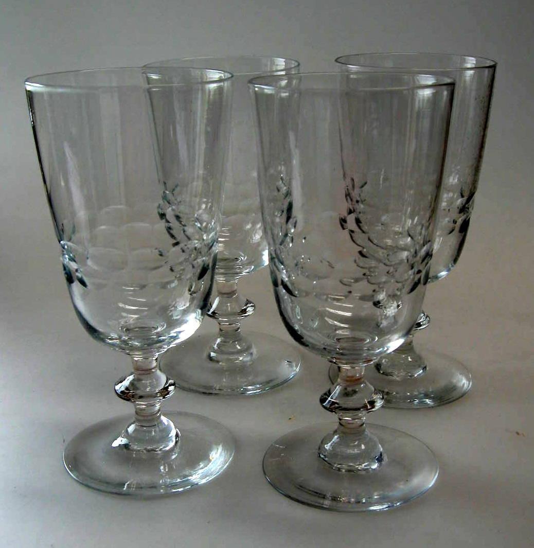 4 glas med slibninger, 20. årh. ca. 1920. Fod som Chr. 8 glas, høj kumme med slibninger. Danmark. H.: 16,5 cm. Pris pr. stk.