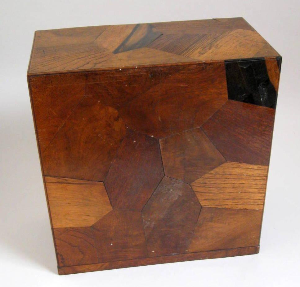 Japansk smykkeskrin, 19. årh. af forskellig farvet træ.